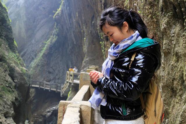 龙水峡地缝,和天生三硚很近,顺路就去了。其实也是一个不太推荐的景点,门票不便宜,喀斯特地貌比较吸引人,但是风景着实不多。也差不多花了1个多小时的时间游览,大概3点的时候就已经在出口等待旅游专线接回仙女山镇。不过很惨的是,刚好错了一趟车,等待下一辆车了四十分钟,以至于后来差点儿错过火车。