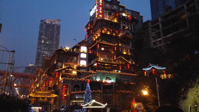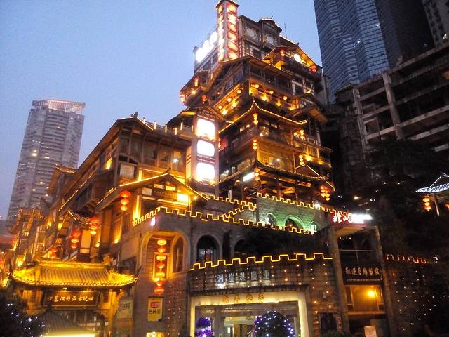 一路惊叹之后,到达较场口,遇见了住宿处的小李,接我们到了接下来几天住的地方。办好手续,放好东西之后,就急忙出门,看看重庆市的经典景点到底是多繁华。为了履行之前说过在重庆的每一天都要去吃火锅的豪言壮语,还有不辜负我去之前做的重庆火锅的攻略,晚上21点多还是愉快地去了火锅店。