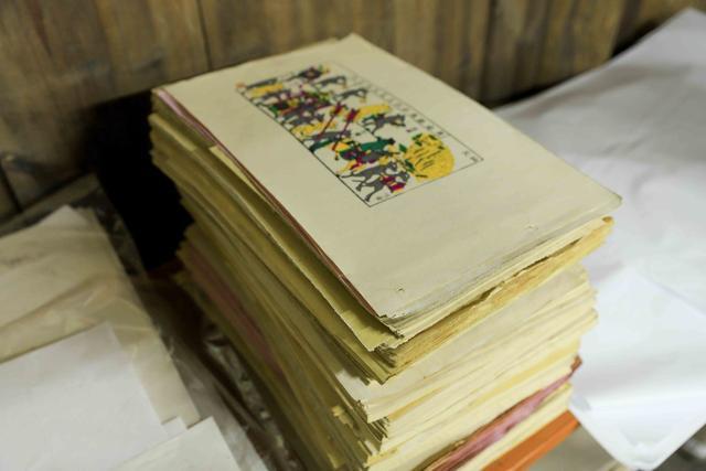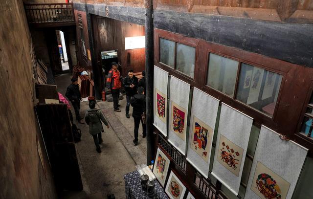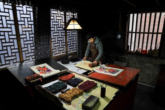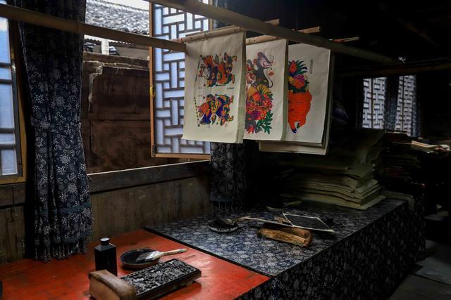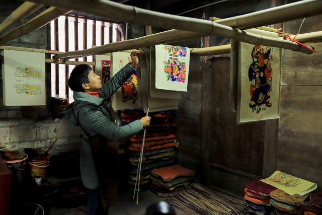 在听滩头年画传承人介绍它的工序时特别惊讶,且不说最初原料的筛选、纸张的制作、版底的雕刻就已经很复杂了,那一张张精美的年画在完成基础工作以后,光是手工印刷就需要七次、手绘描摹需要七次,加上晾晒、装裱等一些重要的工序,从原纸变成年画,共需要二十多道工序,而且都是在一个作坊里完成,不能不感慨一件精美的艺术品得来真是不容易。