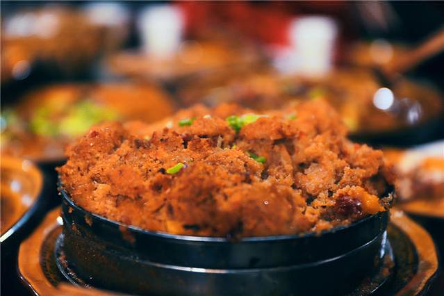 茶可以不喝,镇上的美食必须要吃,古色古香的缘聚宫大厨手艺绝对不一般,醇香的腊肉、滑嫩的豆花、鲜美的江鱼、诱人的蒸格子……让人欲罢不能,特别是腊肉,厚薄合适、味醇肉嫩,香而不腻,味蕾得到极大的满足,是我这几天吃到的最美的一餐。