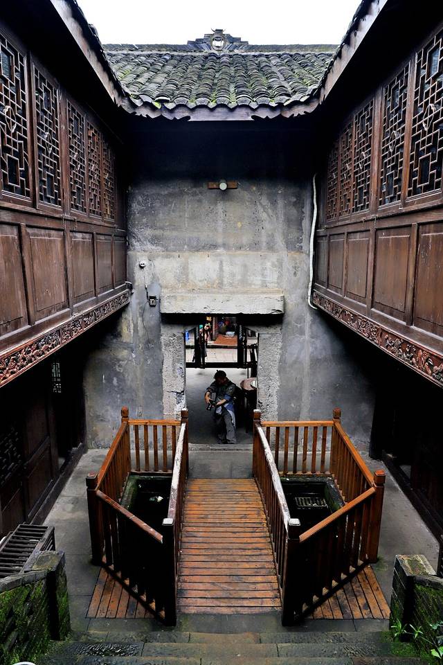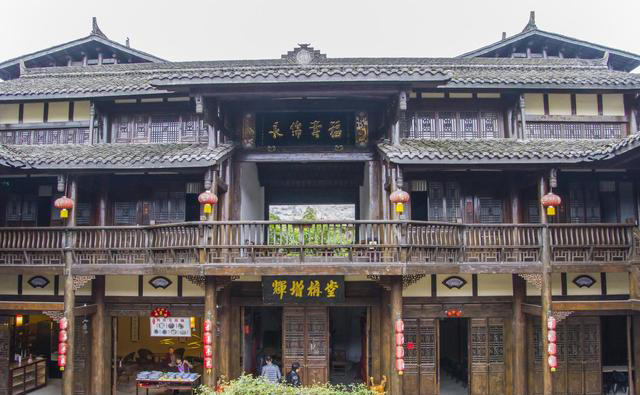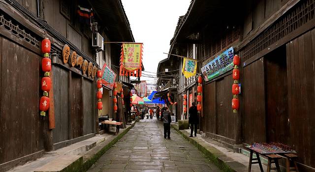 古镇里的福寿街、十字街、半边街大都是石板街,而且保存完好,街道两侧的深宅大院或者店铺大都是二层或三层的木质穿斗结构,单檐房山式屋顶、青砖黛瓦、双重挑檐、木板铺面以及回廊、天井、门窗镶嵌的花鸟吉祥饰物等等,凸显了古镇因南来北往的商业交流而呈现出的巴渝、徽派并融文化气息,每一栋建筑都显得古朴庄严、厚重大气,这种特色在重庆众多古镇中是为数不多的。
