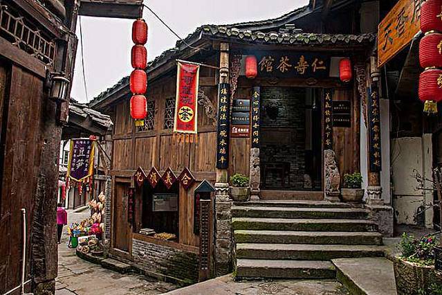 十字街拐角处有一处不太显眼的“仁寿茶馆”,绝对不能小看,那可是当年威震江湖的袍哥会 “仁字号”堂口议事的地方,是重庆唯一保存完好的袍哥仁字号堂口。清晚期帮会势力壮大的时候,这类茶馆往往是帮会开设或有帮会势力照应,一般前堂喝茶休闲,后堂解决帮内帮外事务,小茶馆大天地,茶杯一响,刀枪齐上,让人望而生畏,算了,这里面的茶我还是不进去喝了。