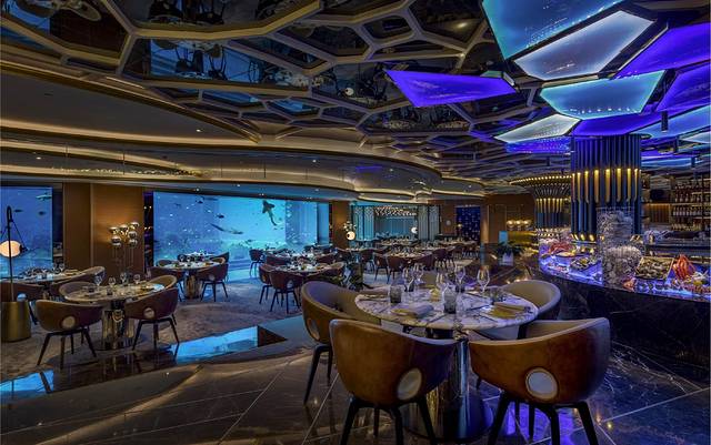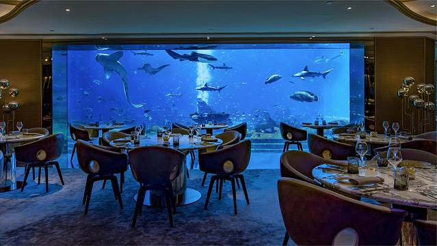 要不是老公高烧不退,我们一定一如惯例放肆地吃吃喝喝,这家亚特兰蒂斯最具特色的海底餐厅自然是在我们的list上,可惜最后还是无奈放弃打卡,不过也并没有觉得多大的遗憾,因为这样的海底餐厅迪拜有,马尔代夫也有,终有一天都会去到!想去的小伙伴一定记得提前预定窗边的座位哦,这样拍出来的照片才好看,况且离得远了也就失去了海底餐厅的意义了。至于餐厅的味道我觉得不必苛求太多,毕竟这种地方就是吃环境的,人均1500左右。