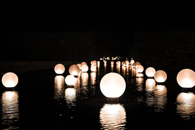 夜晚当这些水上灯球在夜幕中被点亮,宛如一颗颗璀璨的夜明珠,熠熠生辉。