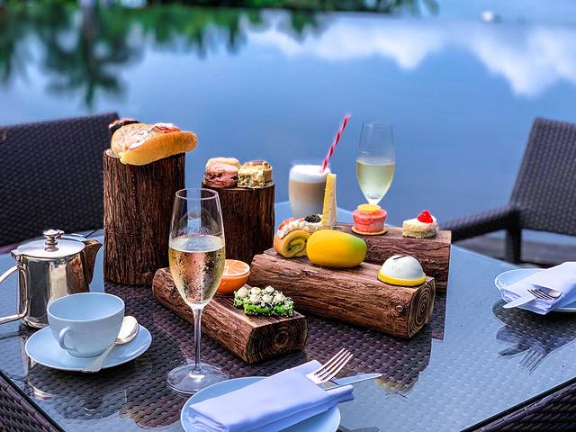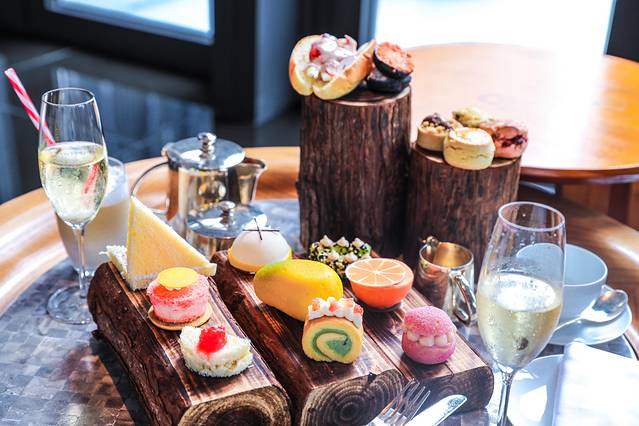 下午茶套餐包含各式小甜咸点,两份饮品(茶或者咖啡),另外还赠送两杯香槟。