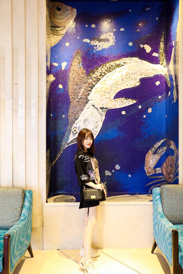 酒店内到处都是海洋元素,老公意思意思帮我照了几张,带病上阵果然是应酬之作啊!