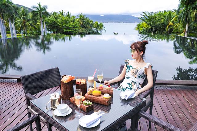 如果天气不那么热还是强烈推荐室外的景观位,喝下午茶的同时,可以抬头望山,低头看海,耳边清脆鸟鸣声不断,这样的氛围简直惬意无比!
