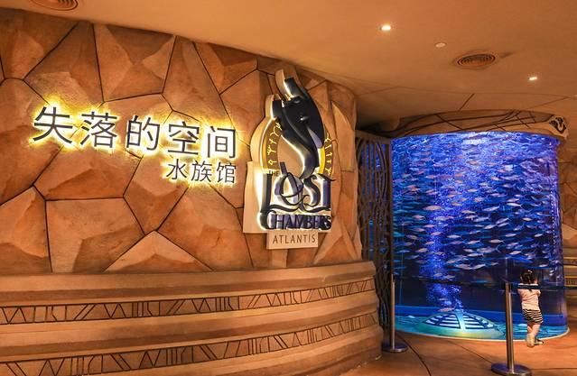 要说三亚·亚特兰蒂斯最大的卖点,除了水世界乐园,便是这个以“失落的空间”命名的水族馆了。水世界乐园这次我俩实属无缘,好在我们本身对水上项目也没有太大兴趣。至于这个被搬进了酒店里的水族馆嘛还是比较向往的。