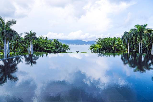铅笔 酒店简介:独霸太阳湾一整片海湾,宛如一座海边的私人府邸。酒店于2015年盛大开幕,精致高雅,低调富有内涵,简约现代建筑风格融入中式元素,透露着曼妙的东方雅韵。
