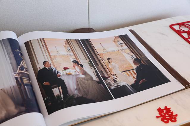 客厅一角摆放着新人的婚纱照,随意翻阅都是满满的爱意。