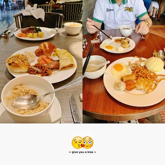 请原谅我难得粗糙一回,把早餐拍得如此随性,但真的真的一点都不影响它的美味值,而且你看我拿的粥、油条、蛋饼、小笼包、春卷、炒面、三文鱼、水波蛋、南瓜饼、虾饺、面包蛋糕等等等等,都是我爱吃的,这些种类对我而言已经足够了啊!给我再多我也吃不下了!
