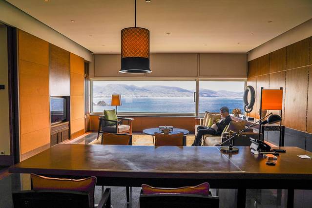 柏悦套房内的IMAX巨幕海景玻璃窗,海景大片分分钟上演着