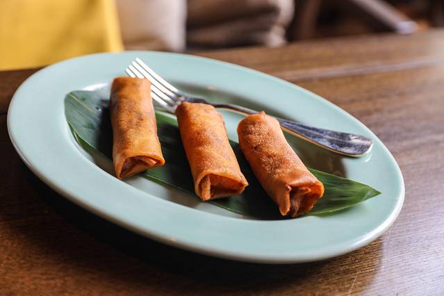 最后一天临走前,我们又光顾了一次茶苑,点了几道广式点心:海南文昌鸡、虾饺皇、椰香糕、翡翠羹还有鲜虾春卷,一共500元左右。