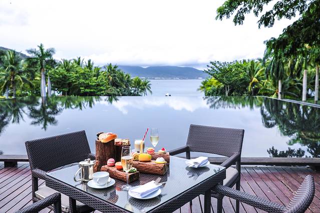 坐在餐厅靠窗的位子还能同时享受无边泳池的惬意美景。