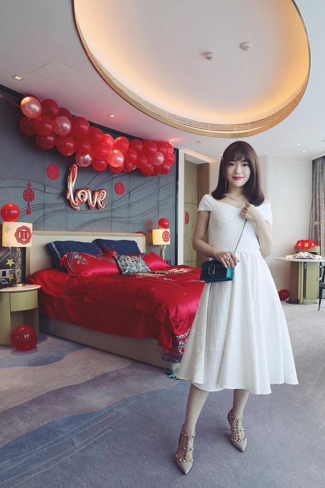 上午是接亲环节,和寻常的婚礼接亲流程一样,婚房是位于酒店52层的豪华套房,161㎡,空间相当宽敞,容纳我们庞大的接亲队伍完全不成问题。