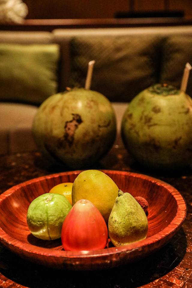 套房每日赠送的椰子和各种水果,有我们最爱的热带水果莲雾~