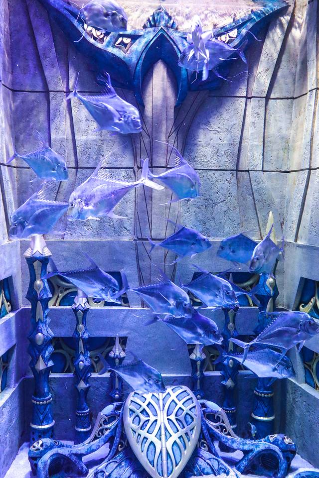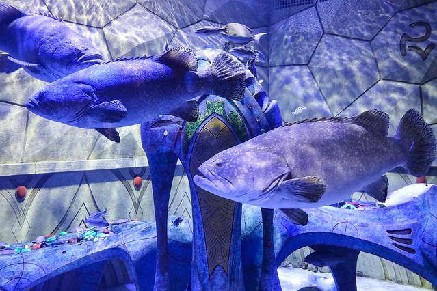 要说和其他水族馆的不同之处,便是它充满了神秘而又远古的神话色彩,漫步其中,仿佛走近了失落的乌托邦文明,探秘隐藏在海底千年的王国遗迹。整个水族馆灯光和音效氛围营造的非常好。