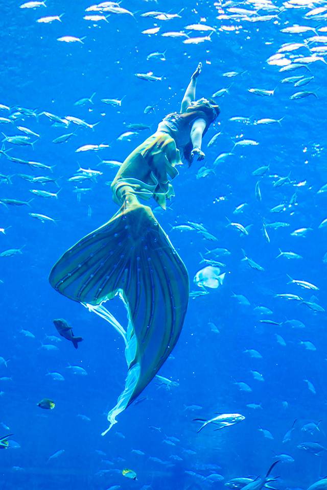 美人鱼身姿曼妙在水中轻盈摆动,美得令人羡慕不已。