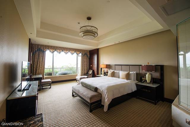 我们自己定的是高级湖房,超宽的房间,简约的中式风格,温馨又大气。自带独立浴缸。