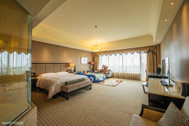 朋友一家三口预定了家庭房,小朋友有自己独立的大床,还有超大的玩偶熊,酒店在亲子度假的设计上处处用心。