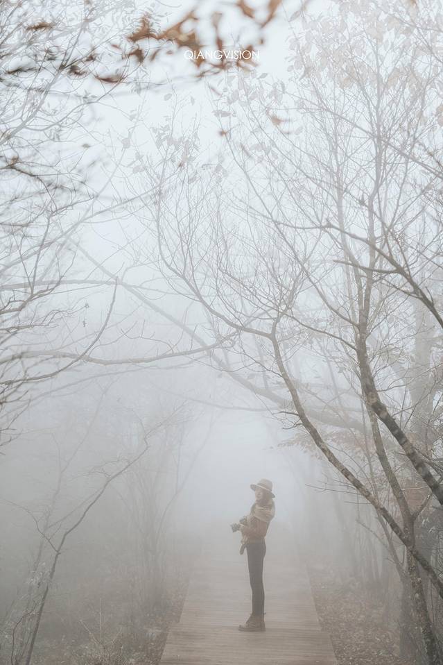 虽然天公不作美,但看着林边自下而上飘来一缕缕薄雾,如流云轻纱飘荡在林间,呼吸着清新湿润的空气,云卷云舒,心境好似高山流水般酣畅淋漓。