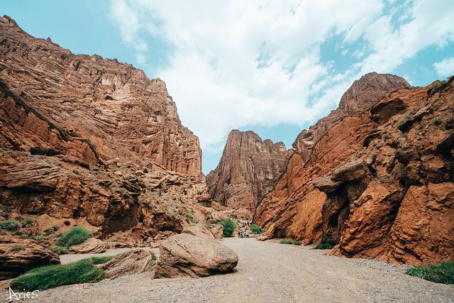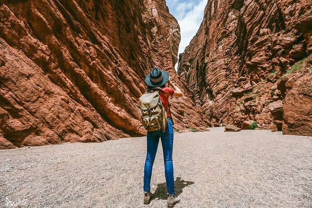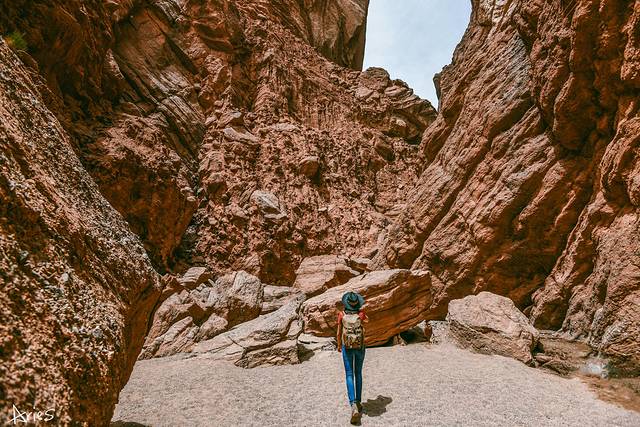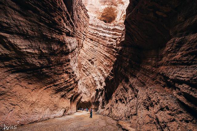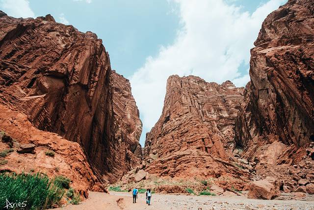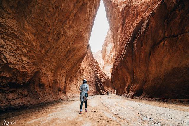 峡谷曲径通幽,红赫色的山体千姿百态,峰峦直插云天,深入才发现原来沟中有沟,谷中有谷,人走入谷底,感觉是那么渺小。