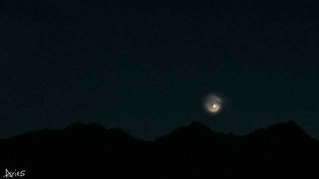 “UFO!”,尖叫里抬起惺忪的睡眼拼命的在黑夜中寻找,远处山顶那不明的发光体正在快速移动,流行?飞机?都不像,莫非真是不明飞行物?!大家火速关掉车灯,小H专业的用相机捕捉它的画面,我们屏气凝神望着它旋转下坠,直至消失在山的后方。