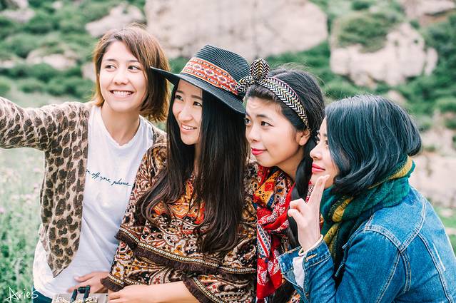 以上从左到右分别是:维族的美妞穆卡、川妹子我和空空、上海的美女踢踢,哎呀自拍都有人偷拍,简直不好意思了,上图来自车队里的其他摄影老师。