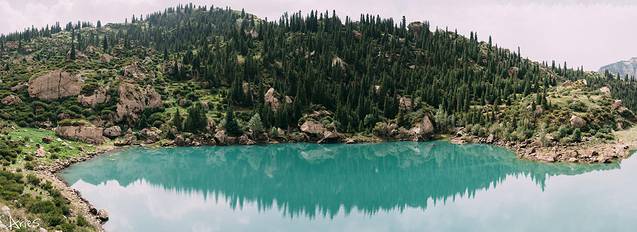 随着海拔的下降,地势地貌又出现了奇妙的变化,碧蓝的海子像宝石,镶嵌在大山之间。独库公路变化万千的地势地貌,真是应了景观大道 的美称啊!