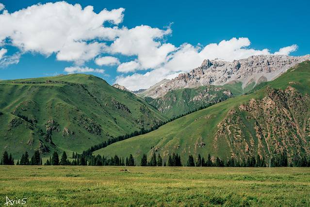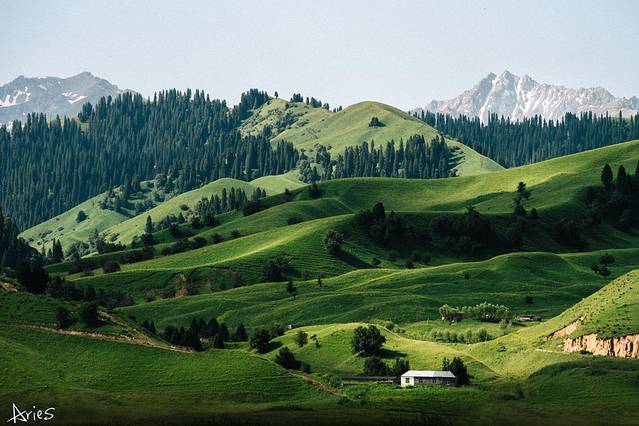 眼前这一片属于那拉提景区的河谷草原,丘陵连绵、水草丰茂。