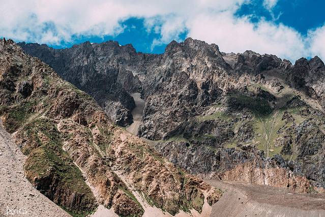 古人云:“蜀道难,难于上青天”而天山的威慑力也震撼每一个过客;缺少植被覆盖,大面积的碎石,汹涌的河流,大面积滑坡是大自然的伤疤,触目惊心。