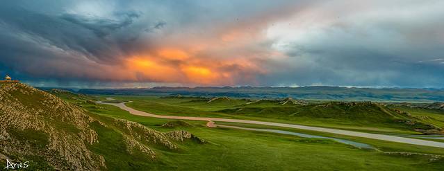旅游大巴在草原上前行,导游播放着草原各个季节美如画的影像,“哎!说好的九个太阳的日落呢?”无奈的望着天空厚重的乌云惆怅万分。