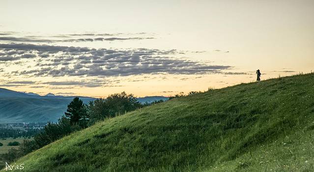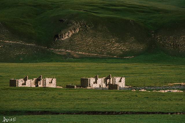 启明星升起,在晨光中把车停到路边,我和小H决定顺着旁边的小路到山坡上去看看,没过脚跟的牧草,露水沾湿鞋底,整个草原沉浸在无边的寂静中,仿佛在屏息等待。