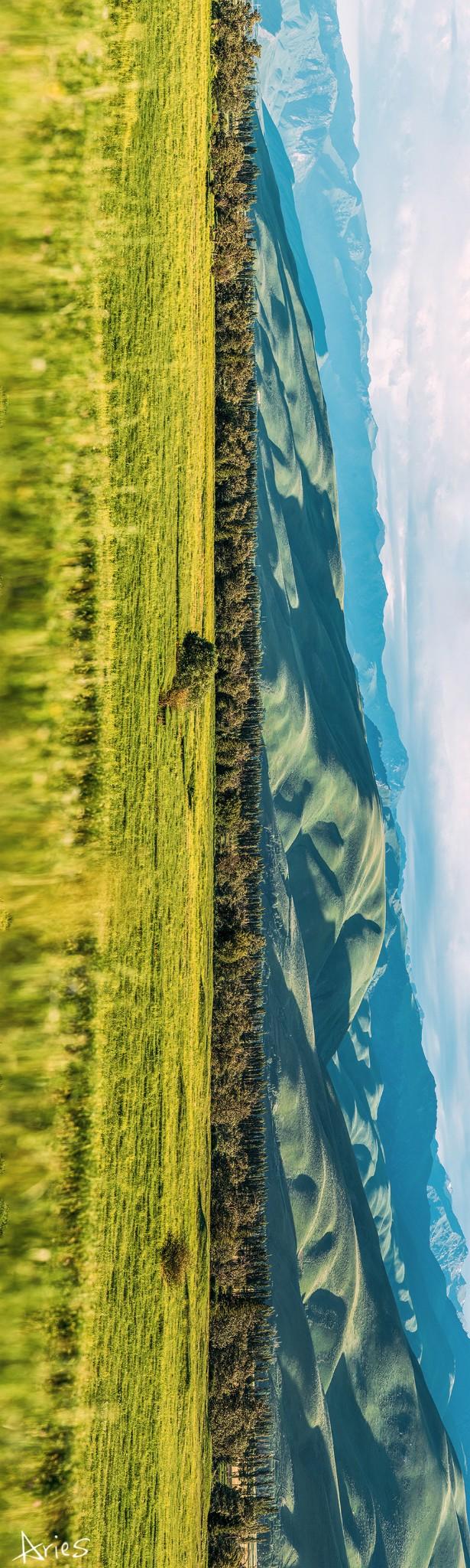 山坡上马儿自由奔跑,羊群悠闲觅食,麦田摇曳,没错,这就是我梦中心心念念的新疆,它甚至超出想象中的美好。