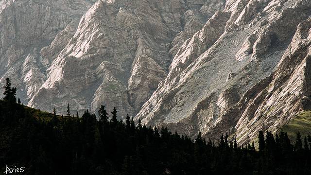 地理好的同学开始侃侃而谈,据说距今两亿年前,经过地壳运动作用,天山山脉断裂,而这里的沉积岩发生了一系列运动,再经过时光的洗礼和风雨的侵蚀,最终形成了如今我们所见那明显的断裂和褶皱。