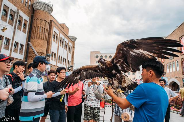 秉性凶猛的鹰被哈萨克族人驯的服服帖帖;号称“葡萄干爷爷的爷爷”的XXXL号葡萄干很畅销,果然姜还是老的辣;拍手鼓的大叔,一敲鼓面,双手就停不下来。