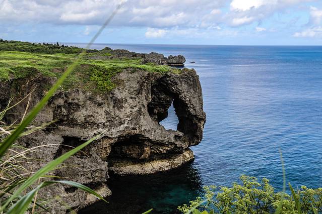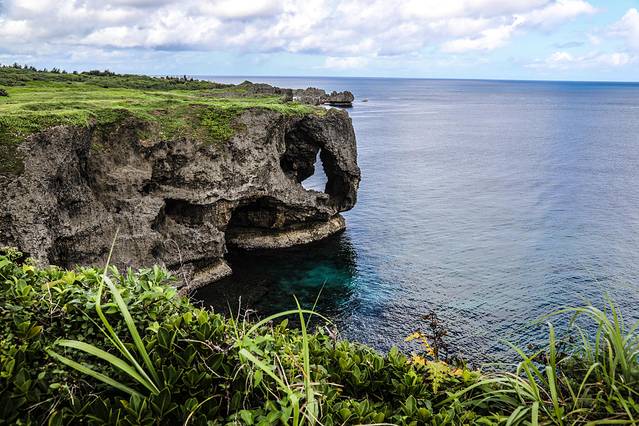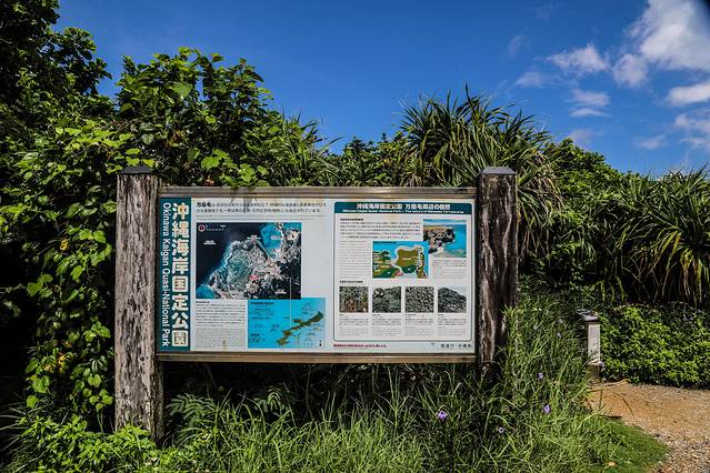 第二天早上起来我们就去万座毛,位于冲绳本岛西海岸恩纳村的国家自然公园.万座毛是冲绳县内数一数二的景观。万座毛的意思是“万人坐下”,“毛”是冲绳的方言,指杂草丛生的空地,所以“万座毛”指的就是可以容纳万人坐下的大草坪。这里不要门票,可以在里面逛逛,大约30分钟就差不多了。