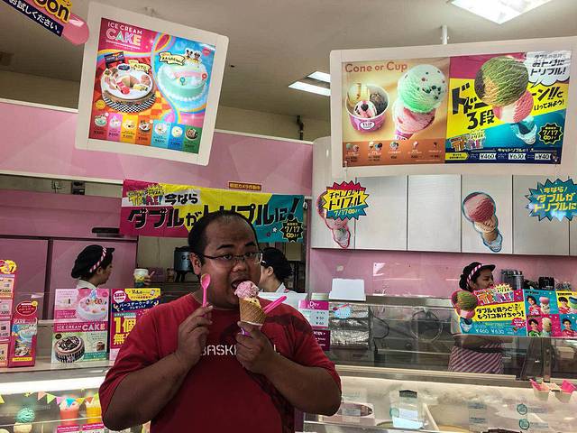这次我们一共是两对儿男女,女孩们自然喜欢逛商场,还没有出发呢,就吵吵去日本买化妆品,女孩天生爱美的心态理解,那么我给他们安排第一站就是北谷町美国村,这里一层药妆店还是比较划算的,购买的人很多,乱糟糟的,但是服务员很多会中文,可以很好解释产品性能,另外楼上的摩天轮也是地标性建筑,我没有去座~。晚上住的冲绳家庭2居室,很舒服,自己超市买的三文鱼和饭菜,(#^.^#)~
