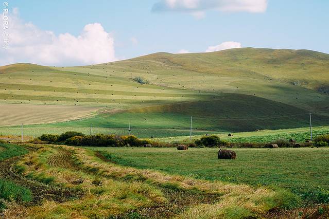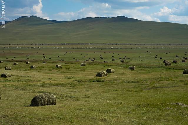 当然我最喜欢的还是草原上的草垛:牧民们会提前用机器垒好草垛,供牛羊们过冬所用。一个个圆滚滚的草垛点缀着一望无垠的草原,好像一场场行为艺术。虽然不是刻意排列如此,但是他们在劳作中,无意间成了草原最好的画家。