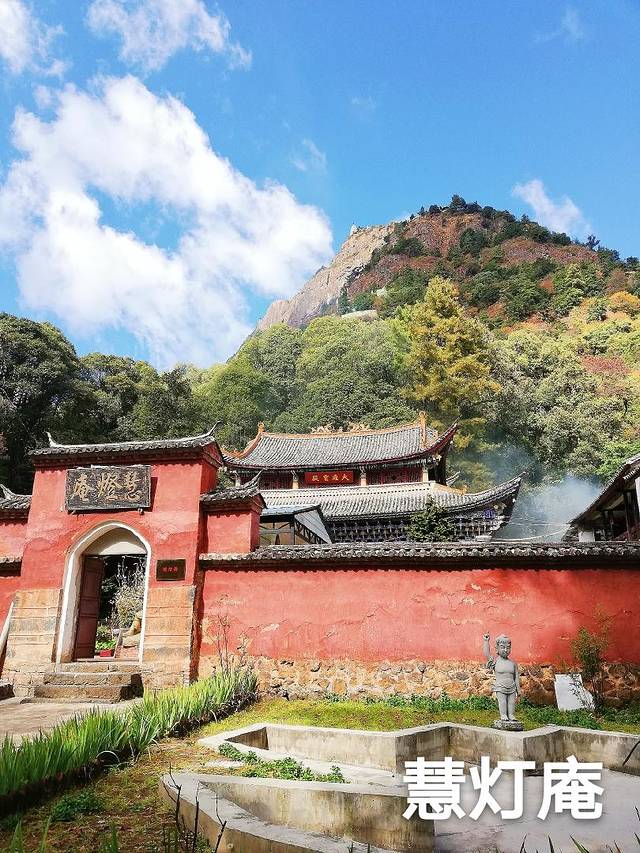 到了索道下站,您先别急着上山,往前走几百米有一座慧灯庵。慧灯庵始建于明朝,清朝重修,现在的建筑是1982年重建的。别看庙子小,但是位置好啊!天柱峰脚下,背靠迦叶殿,是攀登金顶寺的起点。在慧灯庵前,可仰望到天柱峰顶直插云霄的金顶寺楞严塔。庙门旁边塑有释迦摩尼像,找好角度可以拍全景很出片。我是手机拍的,相信您一定比我拍的好看。