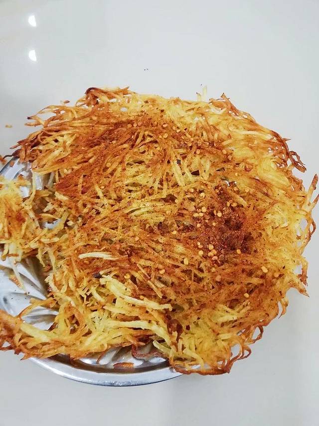 香客街在住宿那座楼往南走,路过斋堂,再走一点,看见左手边有一个台阶下去就可以看到。晚上在香客街吃的蛋炒饭,品相不是特别好没有拍照,山上太冷要了一杯姜茶驱寒,薯饼是提前炸成型的,点了以后老板复炸一下,撒上辣面直接端上来了,酥脆咸辣,还可以配蛋炒饭挺好。