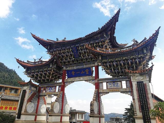 放大镜按照路线进入祝圣寺香客街之前,先到鸡足山山门,停车买门票,55元。在山门附近拍照照相机。