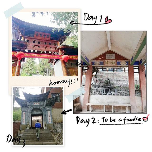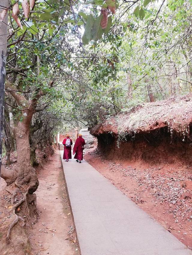 途中遇上出家喇嘛,还有三五一群的香客,鸡足山的路标不是特别清楚,你跟着他们走就能上山。途中经过碧云寺,汤圆街,走到汤圆街已经接近中午停下来休息吃包里的东西,汤圆街也可以买到吃的。因为不着急,我走的特别慢。走到玉佛寺,已经下午1点多了大笑,也就到了索道上站。