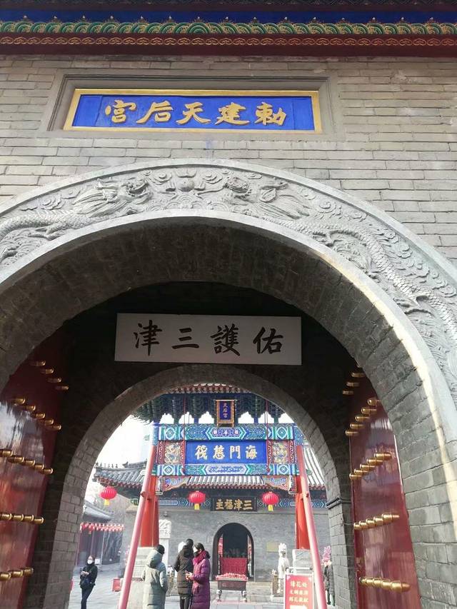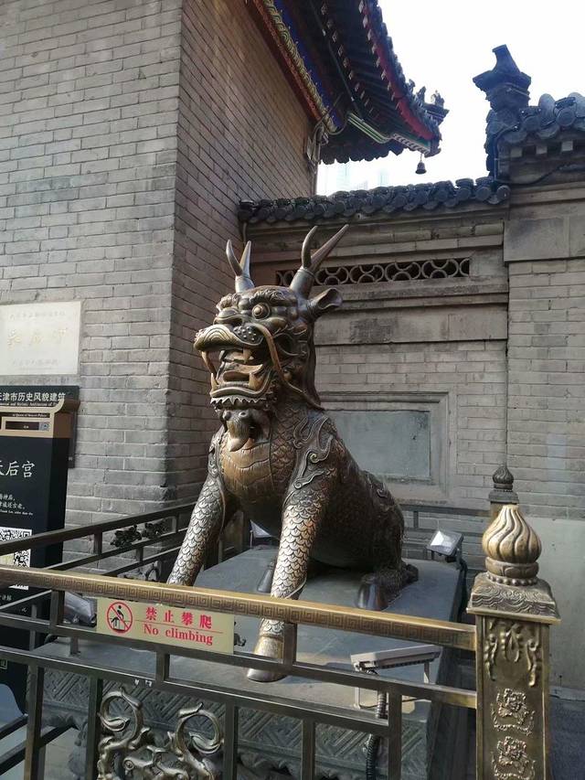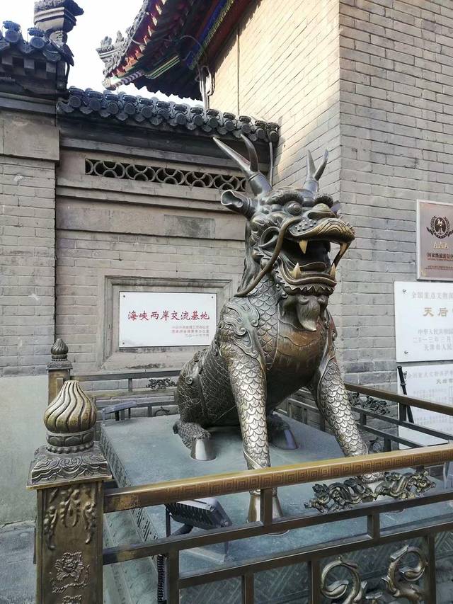 主街中间位置是天后宫,里面供奉的是妈祖,天津叫娘娘宫。始建于元1326年,天津俗话说“先有天后宫,后有天津卫”。这里是天津最古老的建筑群,值得来看看。台湾人多信奉妈祖,这里也是天津与台湾同胞友好的基地。
