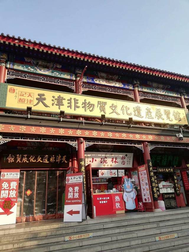 天后宫的前广场上,有达仁堂展览馆,泥人张,杨柳青画店,天津为物质文化展览馆,都是免费参观。