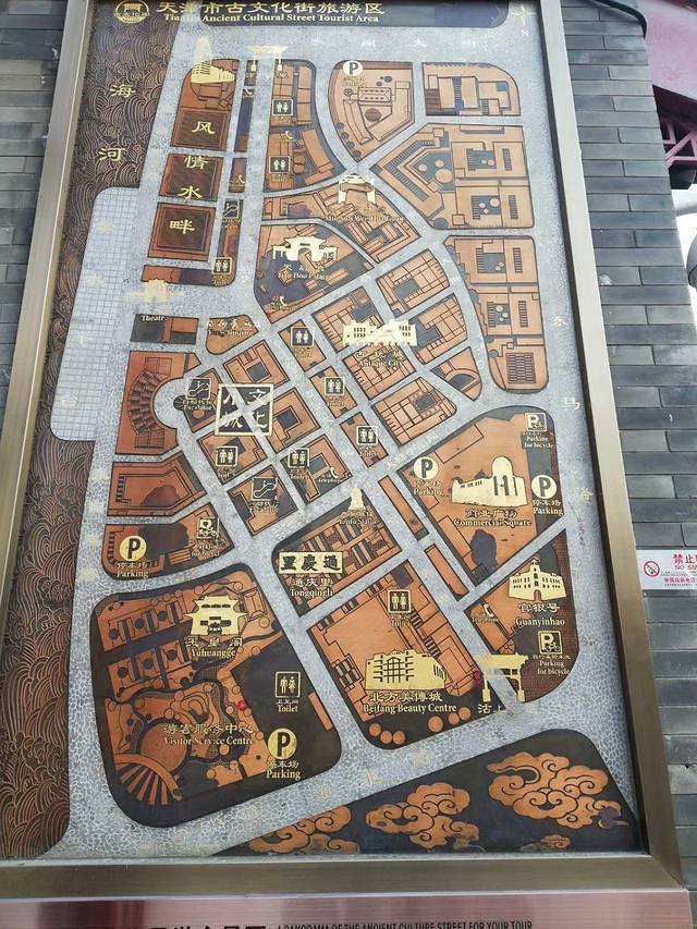 现在的古文化街是国家5A景区,街上旅行团的游客非常多,街上主要景点都有二维码的牌子,有免费的讲解,北门牌楼门口左边左🏻还有一幅导览图。
