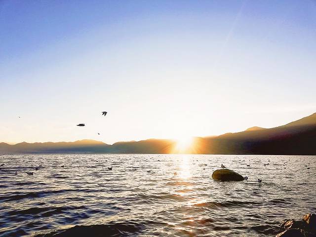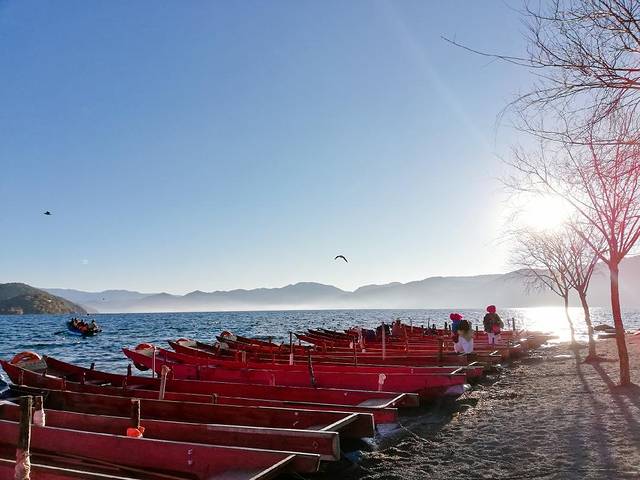 樱花泸沽湖冬天的日出时间在早上8点左右,在房间等了好久,由于天气原因,太阳直接跳了出来。跑到泸沽湖边太阳也已经升起来一点点,逆光抢拍了几张。