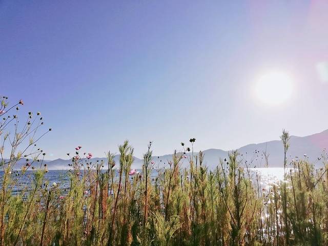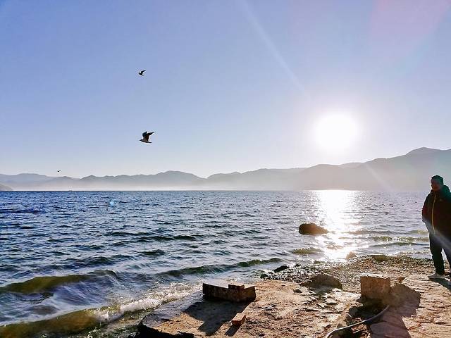 樱花跟两个重庆妹子共同吃了素米线,然后告别,她们继续跟NM师傅的大巴游湖。我换了一间单人房,考虑要在外面跑一天,不带观景台,一天80。去码头附近租自行车开始一天环湖。码头附近有一家卖银饰的店铺,他家租的自行车是捷安特山地车,一天30,押身份证或者现金,特别适合骑行,其他家有各种各样的自行车,但对于长时间骑行的环湖不太好用。给自己准备了几块鲜花饼,几个橘子,一保温杯的热水,骑行中补充能量。