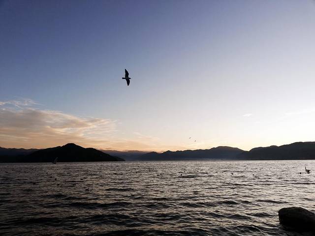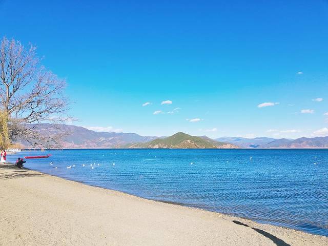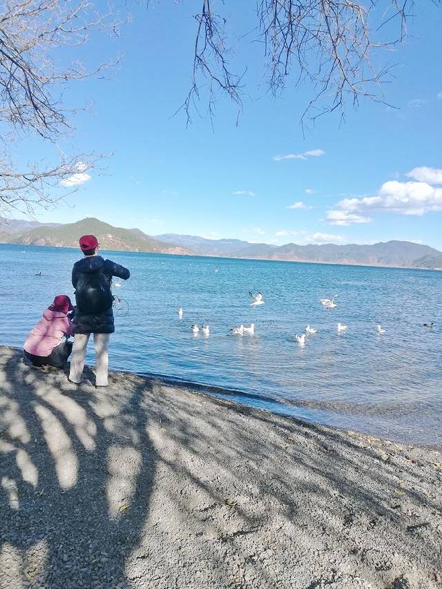 樱花午饭后我回酒店午睡,两个重庆妹子随NM师傅跟车游玩去了。一觉醒来跟老板娘咨询租自行车地点,顺便转到酒店后面湖边走走。湖面上有成群海鸥等待投喂,只要你想拍海鸥,带点吃的就行,搓碎的饼干什么的,如果有人投喂,海鸥会飞起来抢食,场面鲜活。没人投喂海鸥就在海面漂浮着,跟装饰品差不多。据当地NM师傅是说泸沽湖的候鸟有20多种,最多见的就是红嘴海鸥。