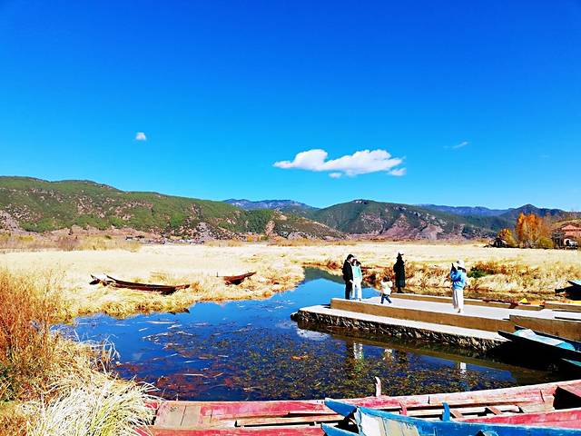 樱花再往前行,朝东行进,密洼古村落,也就是草海的一端起点,拍照留念。这里是大部分游客泸沽湖必打卡景点,人比较多,景色也是非常有特色的。由于长年的泥沙淤积,草海的湖水较浅,因此生长有茂密的芦苇。可谓草里有水,水里有草。挺有意思的一个景点,大家拍照时一定注意安全,一定要站在石台阶上面。